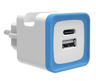 Ce chargeur USB avec 2 prises USB C et USB A de GEFOM permet de brancher 2 appareils multimédias en simultané sur une même prise secteur.