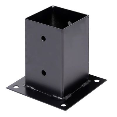 Embase poteau métal galvanisé, thermo-laqué noir, pour poteau bois carré, dimensions 91 x 91 x 150 mm.
