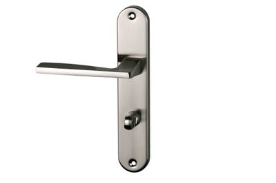 Ensemble de poignées de porte sur plaque Annecy nickel mat à condamnation ALPERTEC