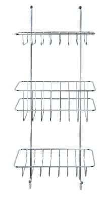 Cette pratique étagère de douche Revigo en acier chromé haut de gamme s'accroche très simple à la paroi de douche à l'aide de deux crochets. Grâce à ses trois paniers carrés, l'étagère offre des possibilités de rangement variées pour les ustensiles de nettoyage et d'entretien dans la douche. Le panier inférieur dispose en outre de deux crochets permettant d'accrocher éponges, brosses ou lavettes.