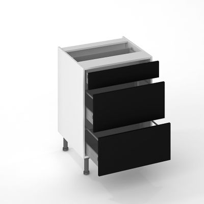 Ces 3 façades tiroir noir mat pour meuble de cuisine donneront le ton à votre pièce ! Posées à l'avant du caisson, ce sont elles qui véhiculeront le style et le coloris de votre cuisine. Ajoutez-y une poignée pour parfaire votre décoration.