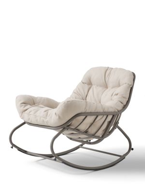 Son design élégant et intemporel se marie parfaitement avec tous les types d'aménagement extérieur. Idéal pour un moment de détente ou un après-midi de lecture, ce rocking chair deviendra vite un incontournable de votre espace extérieur.