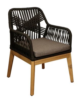 Le fauteuil Dahlia est un choix élégant pour votre espace repas en extérieur. Son cadre en aluminium tressé avec rope plat et pieds en acacia offre à la fois durabilité et style. Ce fauteuil est équipé d'une galette pour un confort supplémentaire.