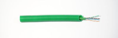 Cette gaine ICTA signifiant Isolant Cintrable Transversalement Annelé est de couleur verte pour bien se différencier des autres gaines électriques accueillant des fils et câbles autres que celui-ci ou coaxiaux.