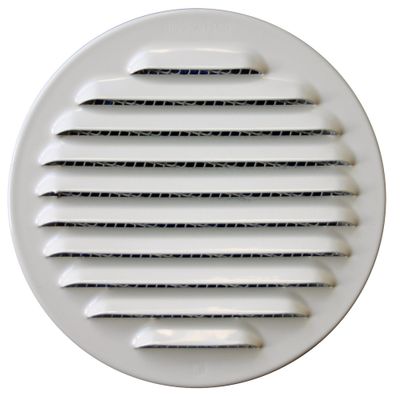 La grille d'aération ronde à persienne blanc diamètre 100 mm avec moustiquaire AUTOGYRE a pour dimensions 100 mm et dimensions hors tout: 125 mm