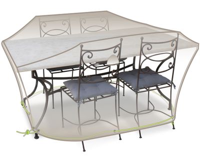 La housse de protection de table rectangulaire avec chaises 4-6 personnes Cover Air JARDILINE est idéale pour la protection de votre table de jardin ainsi que vos chaises contre les intempéries, poussières, pollens ...