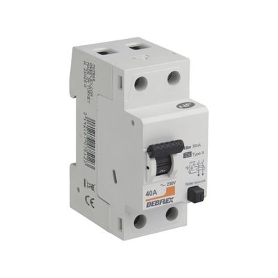 L'interrupteur différentiel 2 pôles 30mA 40A type A DEBFLEX est un dispositif de protection qui a pour but de protéger les personnes contre tous risques d'électrocution.