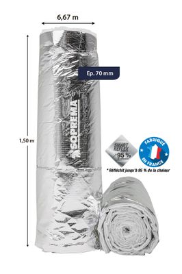 Le PRO CONFORT 70 de SOPREMA ® fabriqué en France est un isolant mince thermo réflecteur multi-usage de 70mm. Ses principales applications sont l'isolation des toits par l'intérieur, des combles perdus ou aménagés, des murs par l'intérieur et des garages.