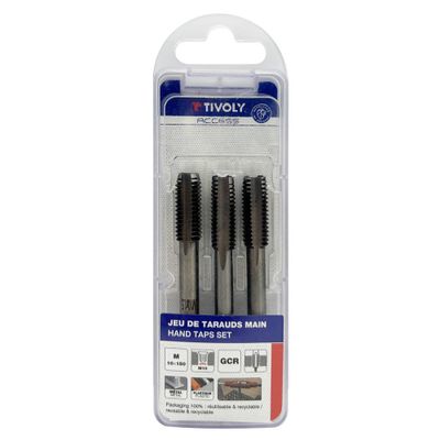 Jeu de 3 tarauds à main (ébaucheur, médian, finisseur), pour le taraudage des