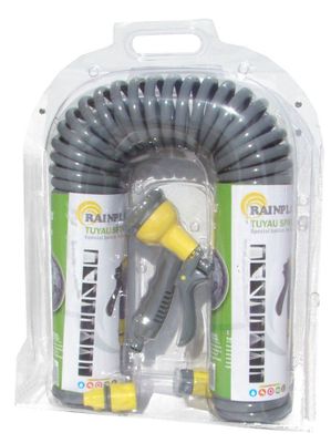 Très pratique, le tuyau spiralé reprend sa forme de ressort une fois votre arrosage terminé et vous permet de gagner de la place pour son rangement.