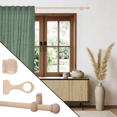 Kit tringle à rideaux, en bois, longueur 1.80 m, diamètre 20 mm, marque MOBOIS.