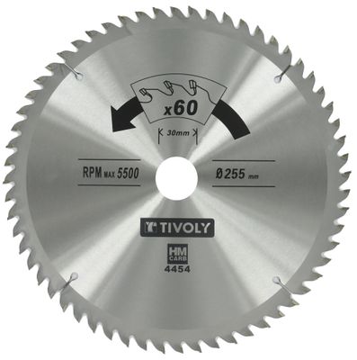 Lame de scie circulaire de finition 60 dents diamètre 255 mm alésage 30 mm TIVOLY