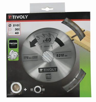 Lame pour scie circulaire de finition 40 dents diamètre 210 mm alésage 30 mm TIVOLY