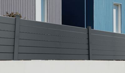 Les lames Bretagne rectangulaires pour palissade en aluminium grise ral 7016 sablé l 150x L 1960 mm par 3 HOMALU s'utilisent avec les poteaux de clôture Homalu afin de configurer votre clôture comme vous le souhaitez.