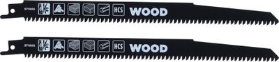 Lot de 2 lames de scie sabre KWB en acier HCS (acier à haute teneur en carbone), offrant une excellente durabilité.
