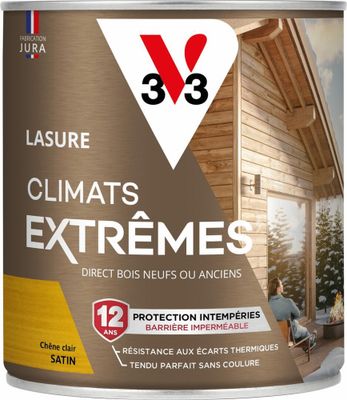 La Lasure Climats Extrêmes V33 protège tous types de bois, neufs ou anciens (fenêtres, volets, bardages, etc.), adaptée aux variations climatiques, elle offre une protection longue durée, assurant une tranquillité face aux intempéries.