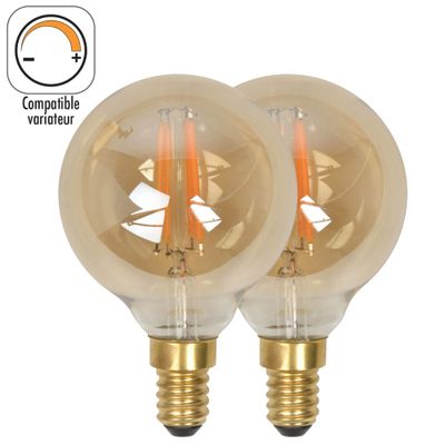 Ce lot de 2 ampoules LED E14 décoratives ambrées de la marque COREP est idéal pour éclairer et apporter de la clarté et de la chaleur à votre environnement intérieur. Elles disposent d'un design en forme de globe avec une finition ambrée et peuvent être utilisées comme décoration à part entière. Ainsi, avec ce type de finition, la lumière diffusée offre un éclairage blanc chaud.