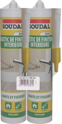 Lot de 2 Mastic Acrylique Blanc SOUDAL pour joints de raccord aux appuis de fenêtres, entre plinthe et mur, entre maçonneries, etc.