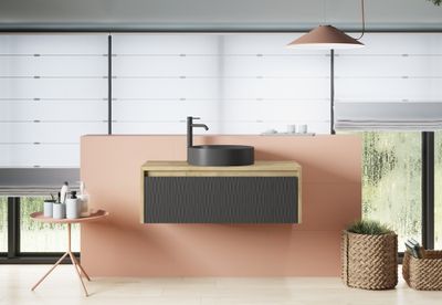 Ce meuble de salle de bains de 100 cm Dune Noir est à suspendre à votre mur, ce qui libérera de la place au sol et vous donnera une sensation d'aération de la pièce. Sa façade ondulée apporte une touche tendance et moderne à votre salle de bains. Il possède 1 tiroir à fermeture ralentie avec des glissières de qualité, pour un confort d'utilisation. Vous obtenez ainsi de la place pour ranger vos affaires.