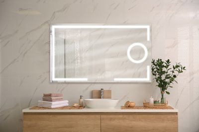 Le miroir de salle de bain LED Brett 2 d'une épaisseur de 5 mm est à fixer sur votre mur. Avec ses touches sensitives, vous pourrez l'allumer et profiter d'un éclairage qui vous aidera à vous raser, vous maquiller ou vous coiffer dans les meilleures conditions. C'est vous qui choisissez la couleur que vous souhaitez et son intensité, donc il peut convenir à toutes personnes. L'avantage de ce produit, c'est que vous bénéficiez également d'un miroir grossissant x5 de 20 cm de diamètre qui est intégré au miroir, avec la possibilité de régler sa luminosité.