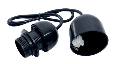 Cette monture noire E 27 pour suspension permet de cacher, de manière esthétique, les fils de branchement de luminaires au plafond.