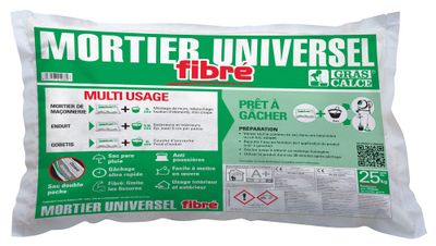 Ce mortier pré-dosé prêt à gâcher pour maçonnerie est composé de sable de rivière 0/2, liants hydrauliques et fibres de renfort.