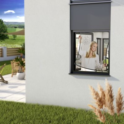 Ses composants flexibles - tiges en fibre de verre recoupables, toile polyester renforcée, raccords d'angle et ruban de fixation - assurent une adaptation optimale à la plupart des ouvertures. Polyvalente, elle peut être utilisée comme solution fixe ou saisonnière, s'installe sans percer, peut être retirée à tout moment et s'adapte également aux fenêtres à pan décalé.