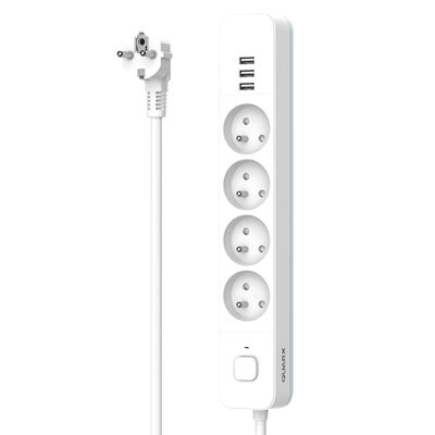 La multiprise QUARX avec interrupteur est l'alliée idéale pour alimenter vos appareils du quotidien à la maison comme au bureau. Équipée de 4 prises 230V et de 3 ports USB-A, elle permet de brancher simultanément vos équipements électriques et de recharger vos appareils mobiles sans adaptateur supplémentaire.