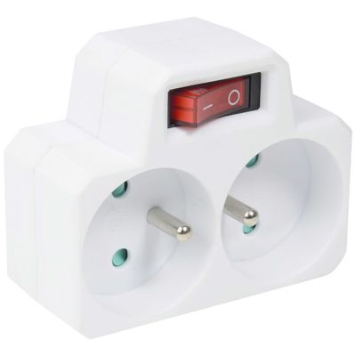Multiprise murale 2 prises ou biplite avec interrupteur blanc - GEFOM