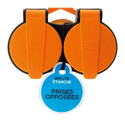 Cette multiprise est équipée de 2 prises 2 pôles + terre avec clapet étanche contre les éclaboussures d'eau et la poussière.
