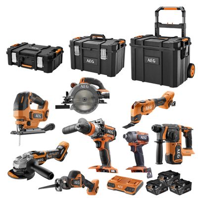 Le Pack 8 outils électroportatifs 18 V avec batteries 5,0 Ah et accessoires AEG8CKBX1-503MS - AEG est l'alternative parfaite pour s'équiper afin d'être opérationnel sur chantier ou pour vous accompagner dans tous vos projets à la maison. Il comprend :
