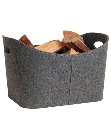 Le panier à bûches dispose de poignées pratiques, qui le rendent très facile à déplacer. Le panier est également disponible en feutrine grise ainsi qu'imitation cuir noir.