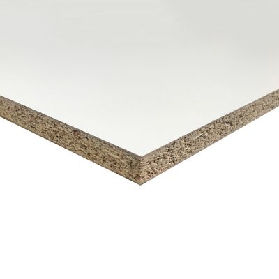 Panneau aggloméré standard, plaque de bois fabriquée à partir de particules de bois agglomérées et liées avec de la résine, finition mélaminé blanc, dimensions 22 x 1220 x 2440 mm.