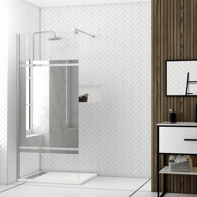 Mesurant 100x200 cm, cette paroi est dotée d'un verre trempé dépoli de 8 mm d'épaisseur et d'un profilé en aluminium chromé.