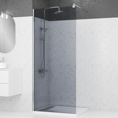 Paroi de douche à l'italienne 90x200 cm profilé chrome verre fumé 8 mm Parma - AURLANE