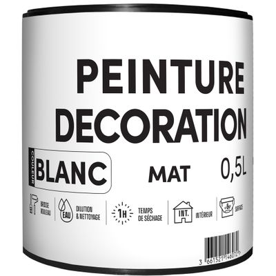 La peinture acrylique mate pour murs et plafonds s'applique sur béton, ciment, plaques de plâtre, papiers peints et toile de verre.