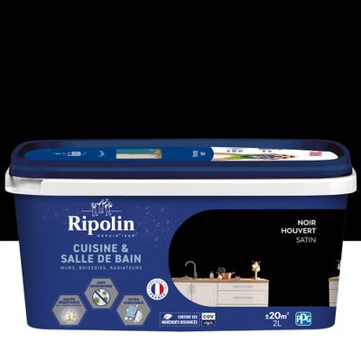 Peinture Cuisine & Bain Noir Houvert satin 2L RIPOLIN