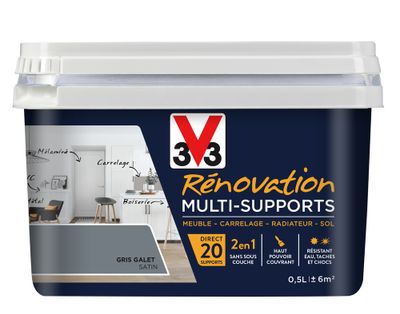 Peinture de rénovation multisupports finition satinée gris galet 500 ml V33