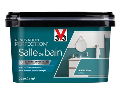 Peinture de rénovation pour salle de bain bleu lagon finition satinée 2 l V33