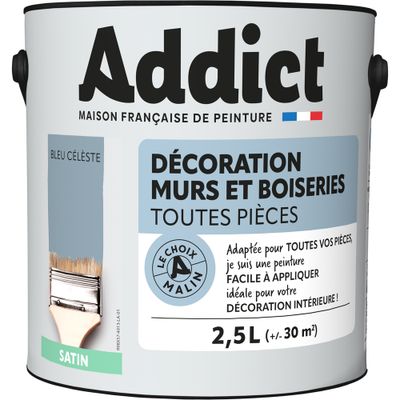 Peinture décoration Murs et Boiseries SATIN 2.5 L bleu céleste - ADDICT