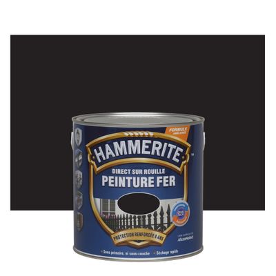 Peinture fer extérieur direct sur rouille finition lisse noir brillant 2,5 L - HAMMERITE