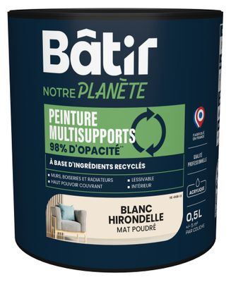 Peinture multi supports mat blanc hirondelle 0,5L BATIR NOTRE PLANETE
