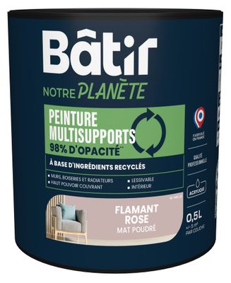 Peinture multi supports mat flamant rose 0,5L BATIR NOTRE PLANETE