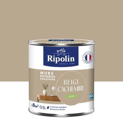 Peinture murs, boiseries et radiateurs beige cachemire satin 0,5L RIPOLIN