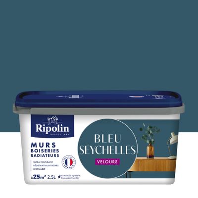 Peinture murs, boiseries et radiateurs bleu seychelles velours 2,5L RIPOLIN
