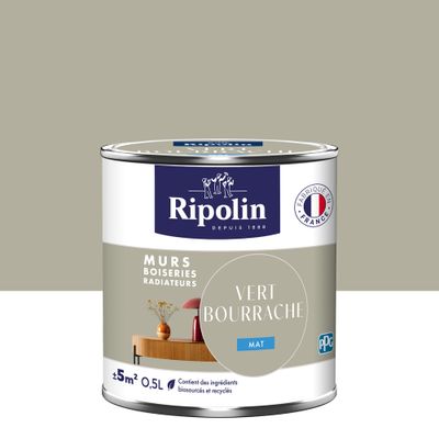 Peinture murs, boiseries et radiateurs vert bourrache mat 0,5L RIPOLIN