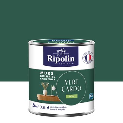 Peinture murs, boiseries et radiateurs vert cardo satin 0,5L RIPOLIN