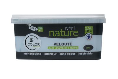 La peinture velouté Défi Nature est une peinture intérieure naturelle microporeuse à base d'huile végétale issue de ressources renouvelables .