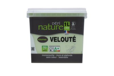 La peinture velouté Défi Nature est une peinture intérieure naturelle microporeuse à base d'huile végétale issue de ressources renouvelables .