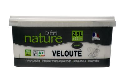 La peinture velouté Défi Nature est une peinture intérieure naturelle microporeuse à base d'huile végétale issue de ressources renouvelables .